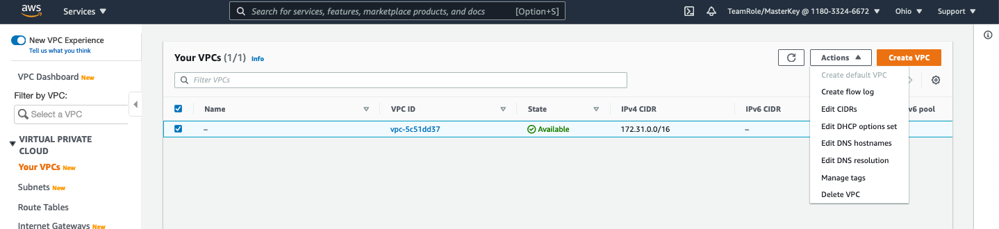 点击如下链接进入 VPC https://us-east-2.console.aws.amazon.com/vpc/home?region=us-east-2